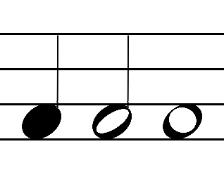 즉, 기본 박자인 사분의 사박자가 의미하는 바는 한 마디 안에 4 박에 해당하는 음표가 들어간다는 의미라고 할 수 있겠습니다. 그럼 한 박자에 들어가는 기본 비트들의 용어와 의미를 배워봅시다. 대표적인 기본 비트의 기호는 다음과 같이 3가지 가 존재합니다.