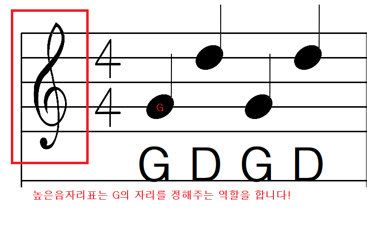 바로 박자를 나타내는 공간입니다. 그 부분은 다음의 그림으로 한눈에 아실 수 있을 겁니다.