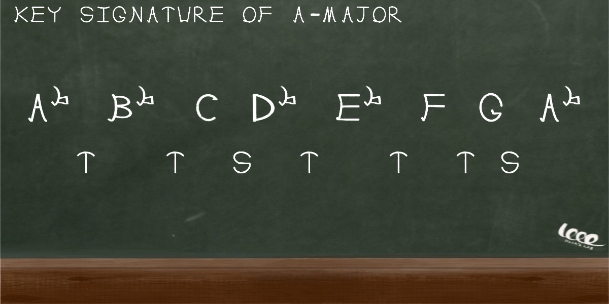 따라서 C-major의 조성에 맞추기 위해서 샾과 플랫을 이용하면 위의 음계 구성은 다음과 같습니다.