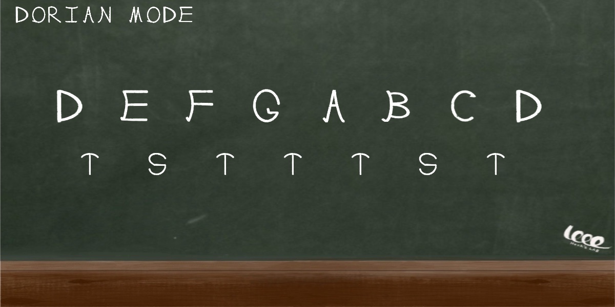 C-major의 음계로 도리안 모드를 구성하면 위와 같습니다. 하지만, 이러한 음 구성은 우리가 듣기에 어색한 느낌을 줍니다.