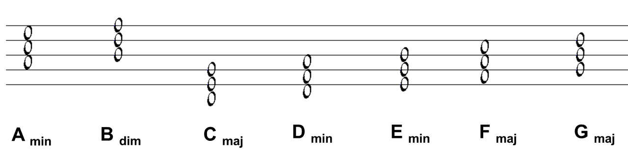 지금까지 배운 3화음 내용을 정리하자면, 3화음은 첫 번째와 두 번째 자리바꿈으로 총 3개의 화음 구성을 추가하는 것이 가능하네요. 그리고 3화음 중 중간의 음을 성질 변화가 가능하다는 것까지 배웠었죠. 처음은 장(major), 그리고 순서대로 단(minor), 감(Diminished), 그리고 증(Augmented)으로 4개가 각각 더 있네요.