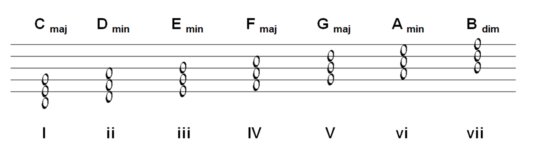 C에서 E까지 4개의 반음, C에서 G까지 7개의 반음을 더하면 음높이 차이의 총량은 11개입니다. 마찬가지로 버금딸림음과 딸림음 또한 총량이 11개입니다. 이렇게 총량의 11개인 3화음은 장(major) 성질을 지닙니다.