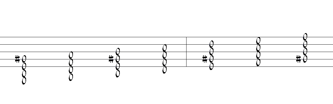 따로 언급하지 않았지만, 4개의 음을 사용하는 4음 화음은 V라는 기호로 자주 나타내고, 그들의 위치 변화에 따라서 Vb, Vc, Vd 기호를 사용하기도 한다.