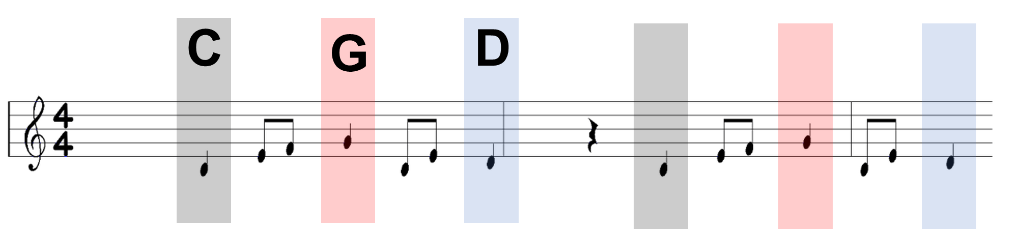 지난번에 사용한 예시 코드를 화음을 쌓아서 들어보도록 합시다. 원래 악보는 다음과 같았는데요.