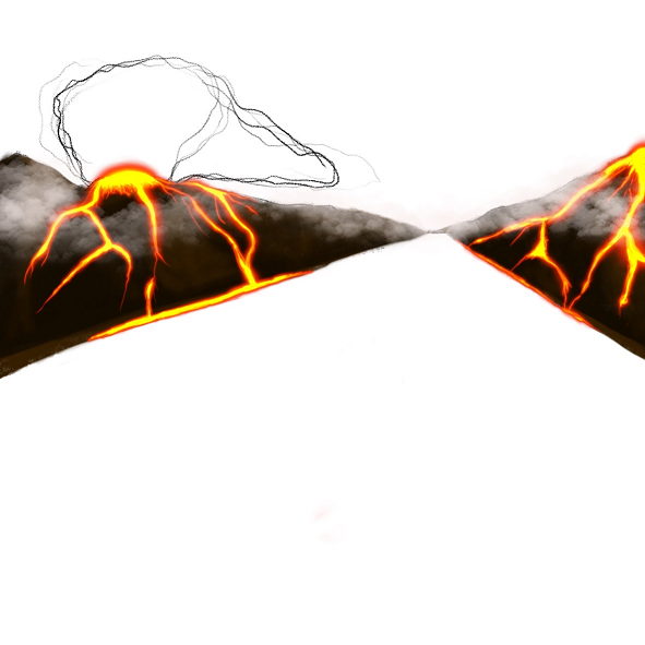 용암이 흐르는 산을 그려봅시다.