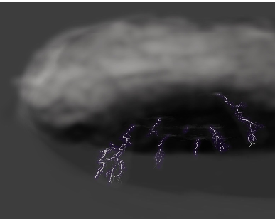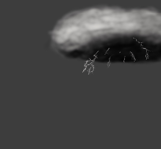 저는 흰색으로 스케치하듯 구름의 밑에 있는 번개의 방향을 표현했습니다.