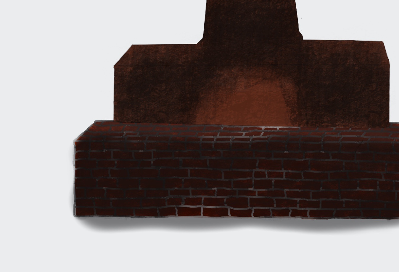 용광로의 채색은 흙으로 지은 느낌을 위해서 갈색으로 채색을 하고, 그 재질을 울퉁불퉁한 흙 모양을 잡아 줍니다.